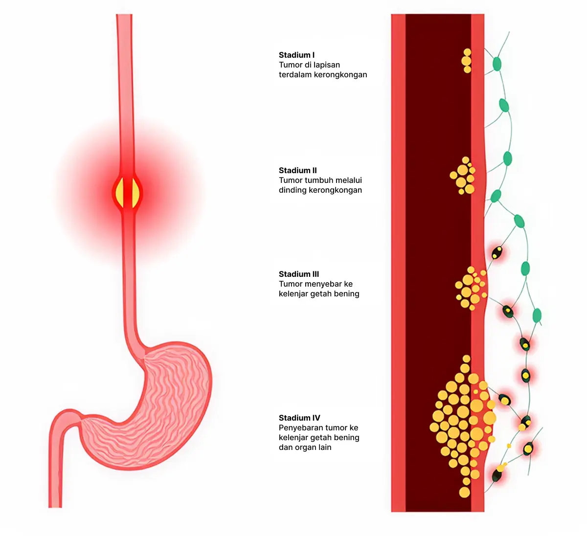 Dokter menggambarkan stadium kanker esofagus sebagai12,13: