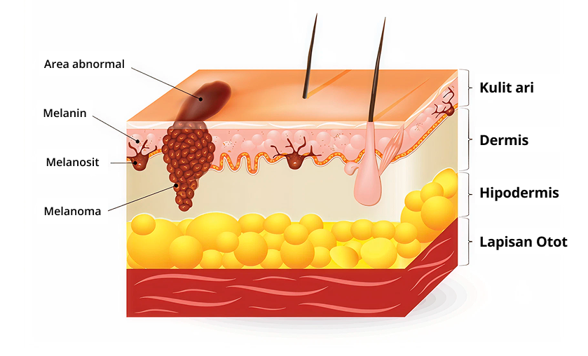 Melanoma adalah penyakit di mana sel-sel ganas (kanker) terbentuk pada jenis sel kulit tertentu yang dikenal sebagai melanosit. Melanosit bertanggung jawab untuk memproduksi melanin, yaitu pigmen yang memberi warna pada kulit. Sel-sel ini menghasilkan lebih banyak melanin ketika terpapar sinar matahari untuk melindungi lapisan kulit yang lebih dalam dari efek berbahaya radiasi ultraviolet (UV)1.