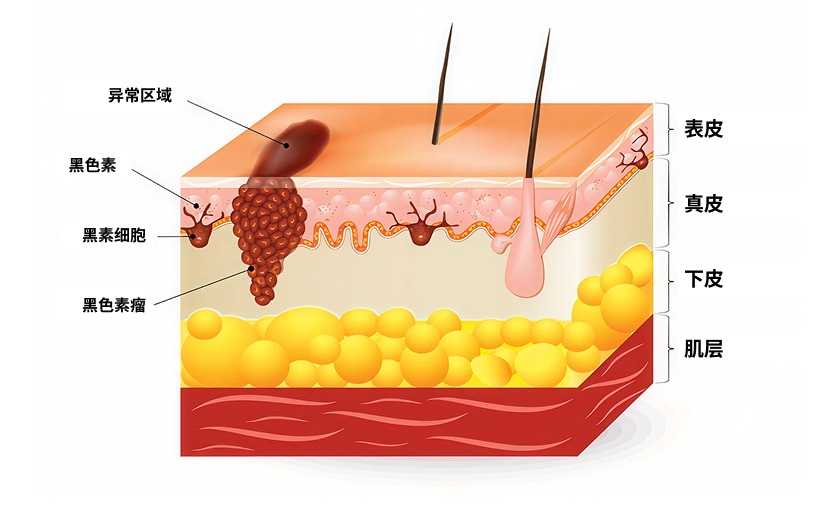 黑色素瘤是一种恶性(癌性)细胞在特定类型皮肤细胞(称为黑色素细胞)中形成的疾病。黑素细胞负责产生黑色素,而黑色素正是赋予皮肤颜色的关键色素。这些细胞暴露于阳光下时会产生更多的黑色素,以此来保护皮肤的深层组织免受紫外线(UV)辐射所带来的不良影响1